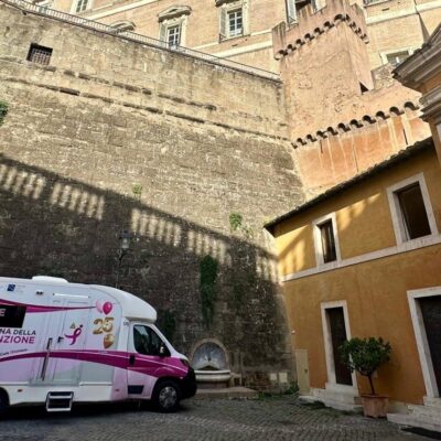 Vuelve, como cada mes, esta vez bajo la ventana del Palacio Apostólico donde el Papa recita el Ángelus, la Caravana de la Prevención, el dispensario
