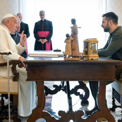 El Papa recibe a Zelensky: de regalo un cuadro sobre la masacre de Bucha