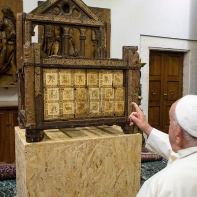Muestran al Papa una reliquia de la Cátedra de San Pedro
