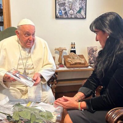 Esta tarde Carmen Magallón, presidenta de Romana Editorial, ha hecho entrega al Papa de un ejemplar del volumen realizado en colaboración con Lev titulado: ‘Más