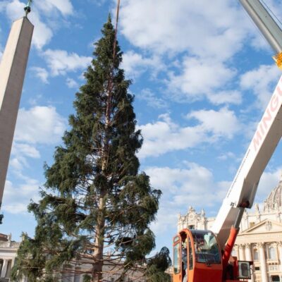 Navidad en el Vaticano, en la plaza de San Pedro el belén de Grado y el árbol de Ledro