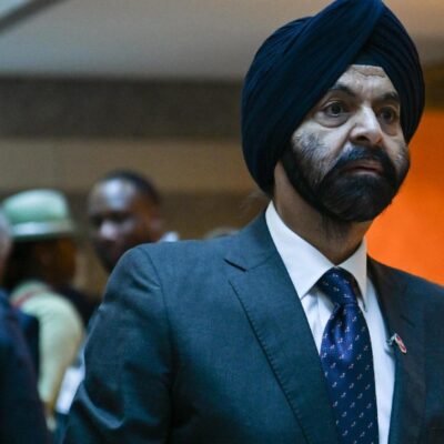 El presidente del Grupo Banco Mundial, Ajay Banga, explica a los medios vaticanos la acción de la institución financiera para combatir la pobreza. La atención