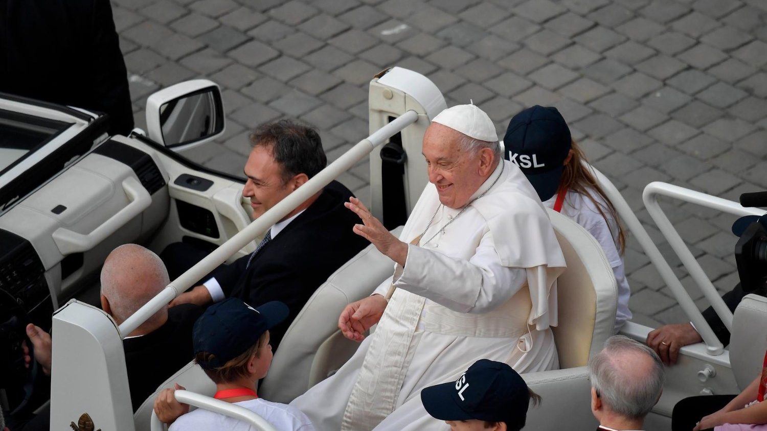Francisco -que comienza su catequesis tras cruzar el hemiciclo de Bernini en el jeep blanco- describe primero el camino que ha llevado a la Iglesia «a la certeza de la plena divinidad» del Espíritu Santo, y luego precisa «qué vida da el Espíritu Santo».