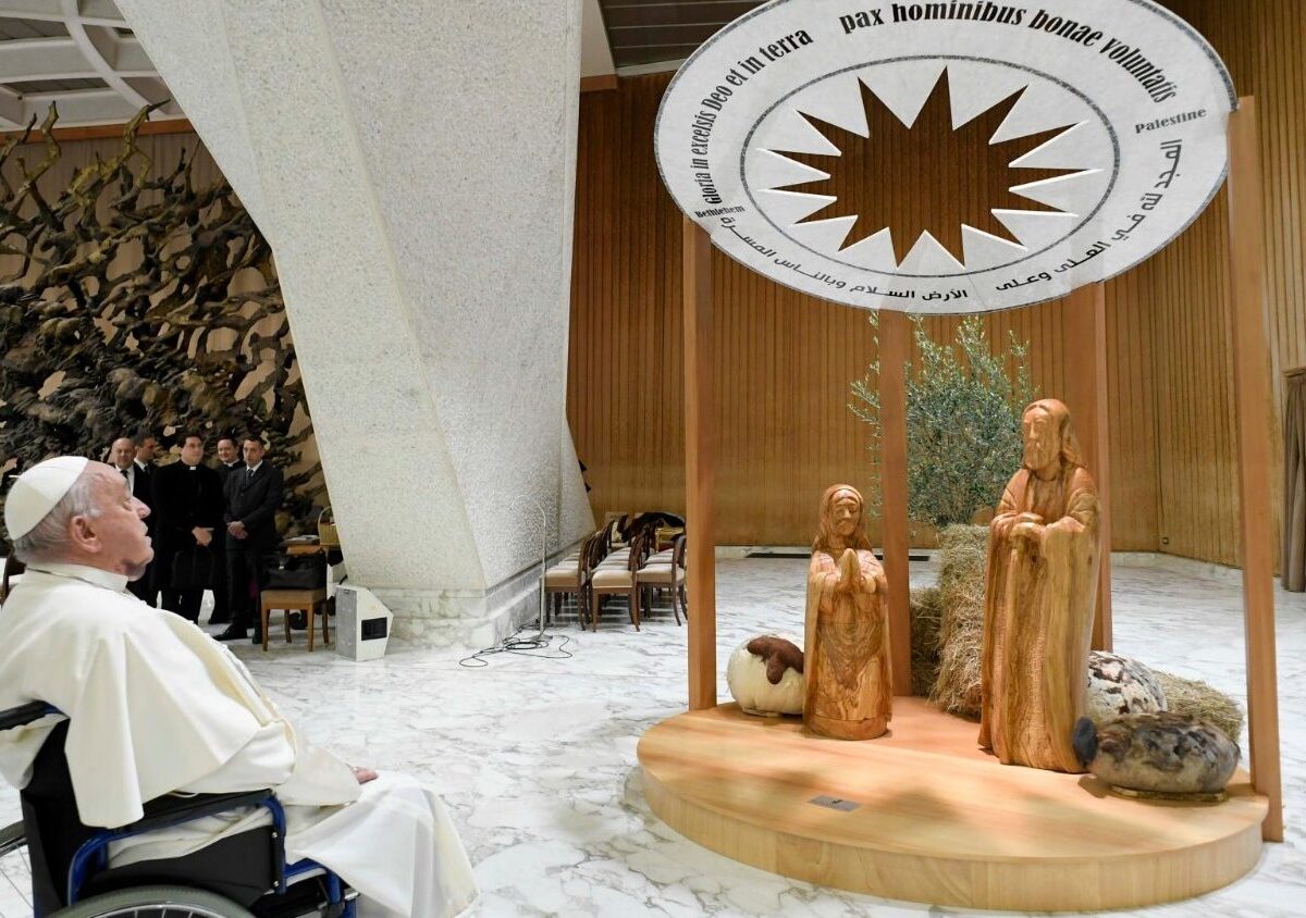 El pesebre elaborado por artesanos de Cisjordania se exhibe en el Aula Pablo VI. El responsable Taisir Hasbu: “Es una presencia muy importante para decir que Tierra Santa necesita ayuda y solidaridad, a la espera del año jubilar para poder volver a acoger a los peregrinos”.