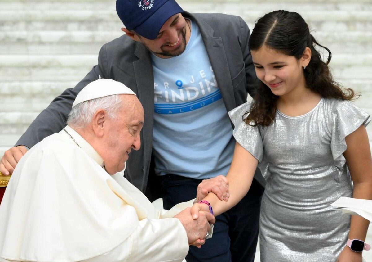 La pequeña ha querido viajar desde Dallas hasta Roma para celebrar su 10º cumpleaños con su padre José Manuel de Urquidi, «misionero digital» entre los participantes en la asamblea. Esta mañana, junto a su madre en el Aula Pablo VI, ha recibido felicitaciones y regalos del Papa y un «feliz cumpleaños» de todos los participantes en la asamblea. Llevó a Francisco cartas y dibujos de sus compañeros de colegio.