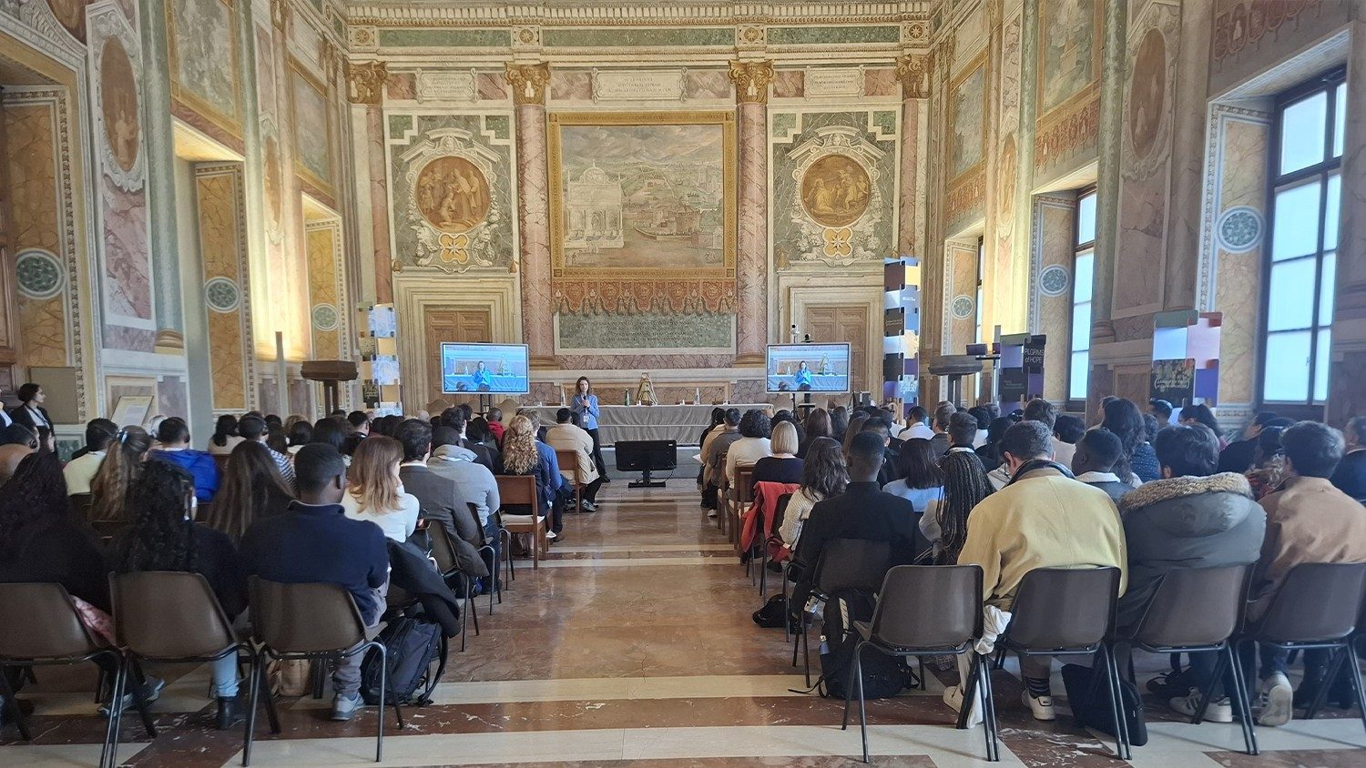 El intenso cronograma comenzó alrededor de las 13:00 en el Palacio Lateranense, con las inscripciones, un coffee break y una primera sesión que ofreció el contexto del proyecto. Felices, con mochilas llenas de materiales que ilustran su misión y cargados de expectativas, los jóvenes iniciaron una experiencia única, conscientes de los esfuerzos que realizaron para llegar hasta allí.